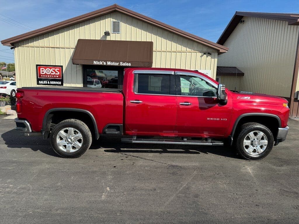 2020 Chevrolet Silverado 2500HD LTZ 114,058 Miles, $46,573, Duramax 6.6L V8 Turbodiesel 10-Speed Automatic 4WD Red Tintcoat 10-Way Power Driver Seat Adjuster w/Lumbar, 10-Way Power Passenger Seat Adjuster w/Lumbar, 12-Volt Rear Auxiliary Power Outlet, 120-Volt Bed Mounted Power Outlet, 120-Volt Instrument Panel Power Outlet, 170 Amp Alternator, 2 USB Ports (1st Row), 2 USB Ports & 1 SD Card Reader, 2-Speed Active Electronic AutoTrac Transfer Case, 4.2" Diagonal Color Display DIC, 4G LTE Wi-Fi Hotspot Capable, Advanced Trailering System, Auto-Dimming Inside Rear-View Mirror, Bluetooth® For Phone, Chevrolet Connected Access Capable, Chrome Front Grille, Chrome Mirror Caps, Color-Keyed Carpeting Floor Covering, Compass, Deep-Tinted Glass, Driver Memory, Dual Charge-Only USB Ports (2nd Row), Electric Rear-Window Defogger, Electrical Lock Control Steering Column, Electronic Cruise Control w/Set & Resume Speed, Floor-Mounted Center Console, Front Bucket Seats w/Center Console, Front LED Fog Lamps, Front Rubberized Vinyl Floor Mats, Gooseneck/5th Wheel Prep Package, HD Radio, HD Rear Vision Camera, Heated & Auto-Dim Pwr Vertical Trailering Mirrors, Heated 2nd Row Outboard Seats, Heated Driver & Front Outboard Passenger Seating, Heated Steering Wheel, Hill Descent Control, Integrated Trailer Brake Controller, Keyless Open & Start, Leather-Wrapped Steering Wheel, LED Cargo Area Lighting, LTZ Convenience Package, Manual Tailgate Function w/EZ Lift, Manual Tilt & Telescoping Steering Column, Off-Road Suspension, OnStar & Chevrolet Connected Services Capable, Power Door Locks, Power Front Windows w/Driver Express Up/Down, Power Front Windows w/Passenger Express Up/Down, Power Rear Windows w/Express Down, Power Sliding Rear Window w/Defogger, Preferred Equipment Group 1LZ, Pwr Up/Down Tailgate Function w/Pwr Lock & Release, Rear Rubberized Vinyl Floor Mats, Rear Wheelhouse Liners, Remote Vehicle Starter System, Steering Wheel Audio Controls, Unauthorized Entry Theft-Deterrent System, Universal Home Remote, Up-Level Rear Seat w/Storage Package, Ventilated Driver & Front Passenger Seats, Z71 Off-Road Package.Kalkaska Used Trucks Large Selection Traverse City Gaylord Nick's Motor Sales 204 N Cedar St Kalkaska MI 49646.[!@@Additional Info@@!]Alloy Wheels, Bluetooth, Convenience Package, Heated Seats, Leather Seats, Multi Zone Climate Control, Power Mirror Package, Remote Start, Storage Package, Suspension Package, Tow Package, Engine, Duramax 6.6L Turbo-Diesel V8