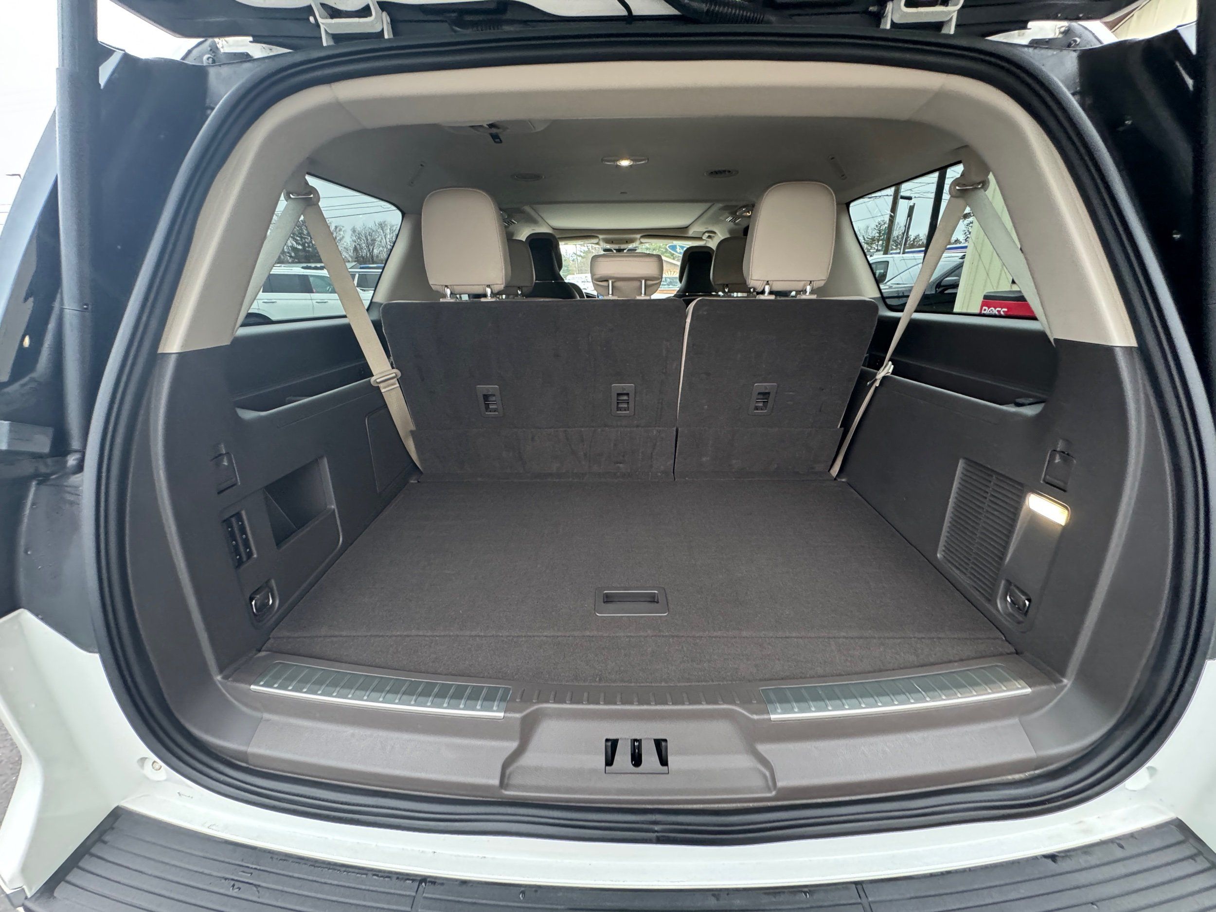 Third-row seatback upholstery: Carpet third-row seatback upholstery